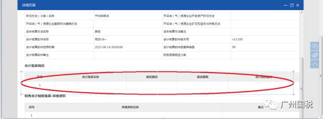 检查详细信息页面的“会计报表情况”有没有信息(如下图所示),如果没有任何信息,则纳税人需按照自身的会计制度,新增报表内容,发送申请待税务机关确认后解决;如果有一条或以上的会计报表信息,则为异常,需联系税务机关反映问题。
